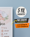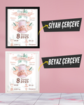 Kişiye özel hazırlanan bu şık tablo, kız bebeğinizin ilk fotoğrafı ve doğum bilgileriyle tasarlanır. Hem dekoratif hem de yıllarca saklanabilecek özel bir hatıra…