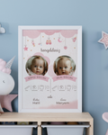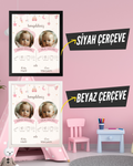 Her iki bebeğinizin fotoğrafı ve doğum bilgileri ile hazırlanan bu şık tablo, kız bebek odalarına zarif bir dokunuş katarken yıllarca saklanabilecek unutulmaz bir hatıra olur.
